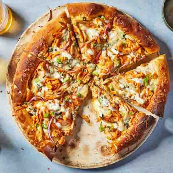 Savor the flavors of the Caribbean with our Caribbean Chicken Pizza—topped with grilled chicken, red and green peppers, and onions on a perfectly baked crust.